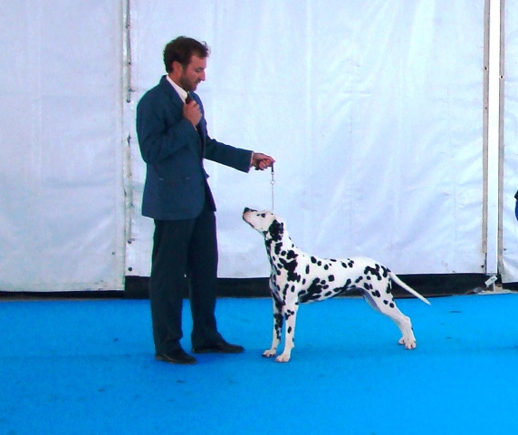 Nuestro dálmata Tiber (Tiberius de Cliveal), con tan solo 16 meses de edad, participaba por primera vez en clase intermedia machos, consiguiendo la calificación de Excelente 1º.