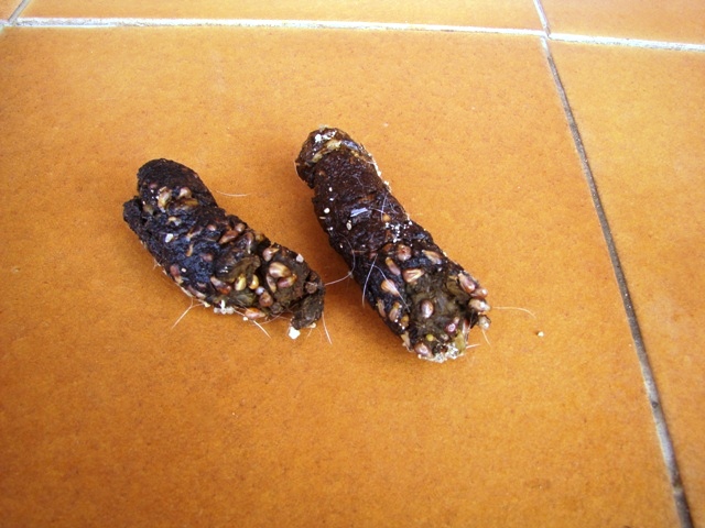 También se habla incluso de que la pepita de la uva contiene pequeñas cantidades de cianuro y esa sería la causa de la toxicidad de las uvas. Si esto fuera así, el perro tendría que comer una cantidad descomunal de uvas para que se produjera esta toxicidad y aún siendo así, los perros no digieren la pepita de la uva, aqui tenéis unas fotogafías de las heces de nuestros dálmatas tras comer una buena cantidad de uvas.